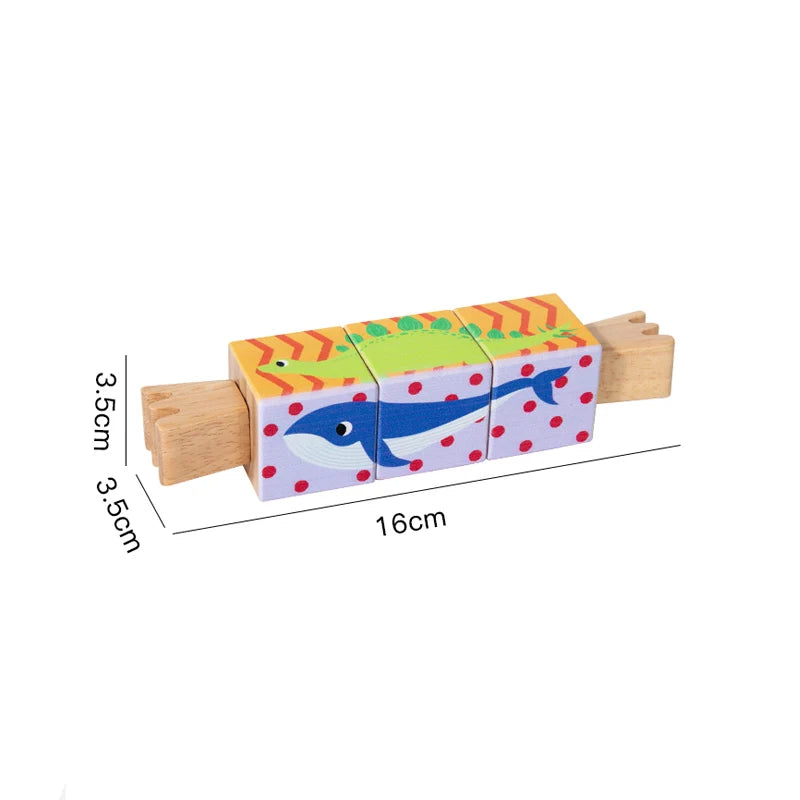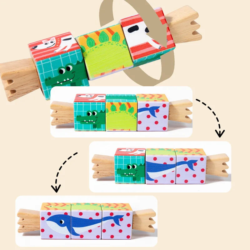 🔄 Bloques giratorios de madera: Juguete educativo con piezas rotatorias ilustradas.