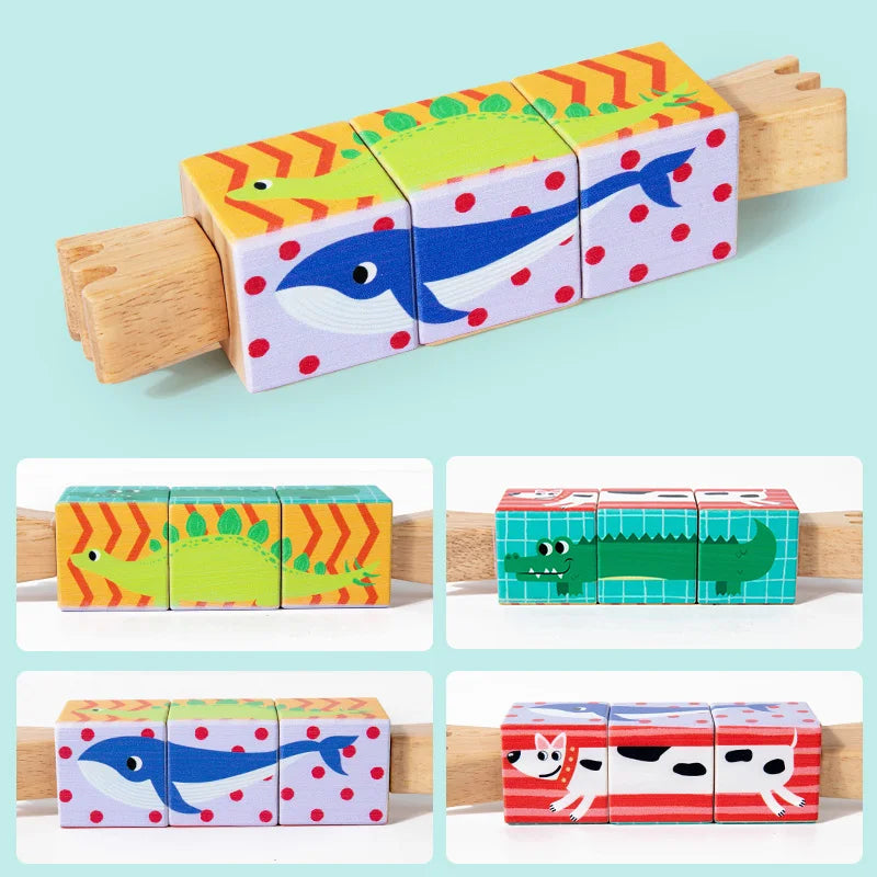 🧩 Contenido: Bloques giratorios con ilustraciones de animales.