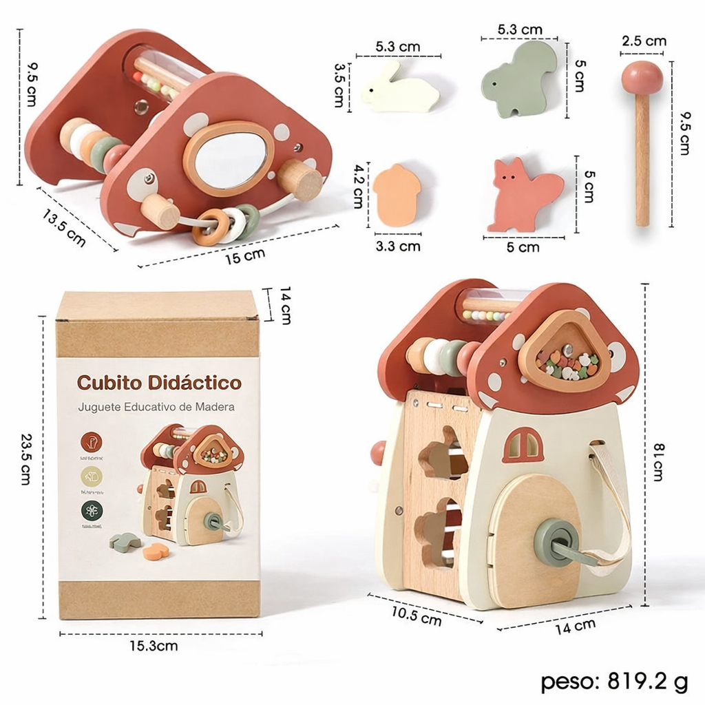 Cubo de actividades de madera diseñado para el desarrollo temprano.