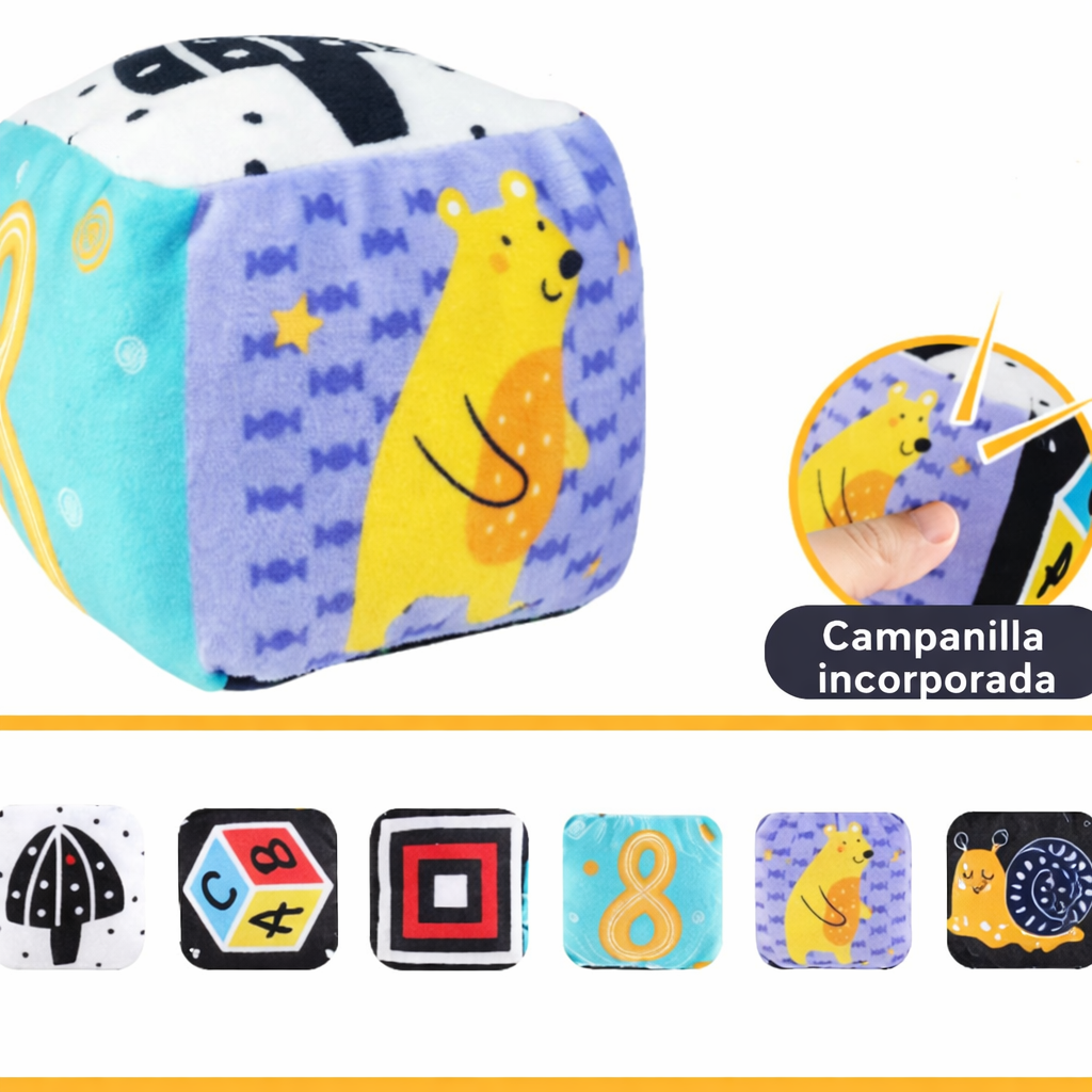 - 🔔 Estimula la exploración sensorial a través del sonido suave y las diferentes texturas.