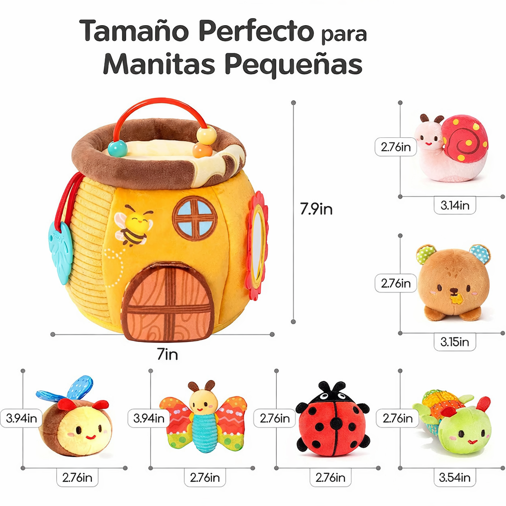 Tarro de miel interactivo con personajes suaves y coloridos.