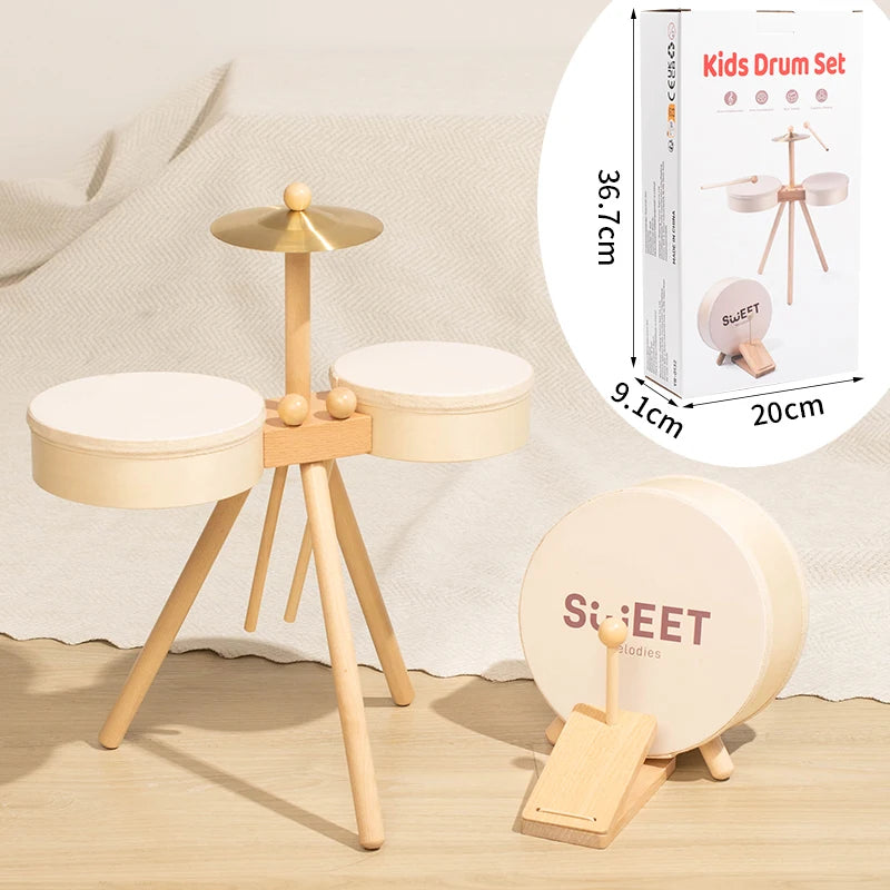 🥁 Batería infantil de madera: Set musical diseñado para que los niños descubran el ritmo.