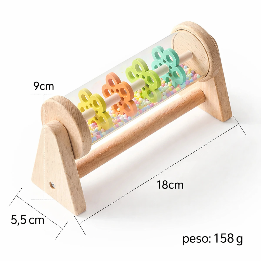 - 🌧️ Estimula la vista y el oído con el movimiento suave de las bolitas.