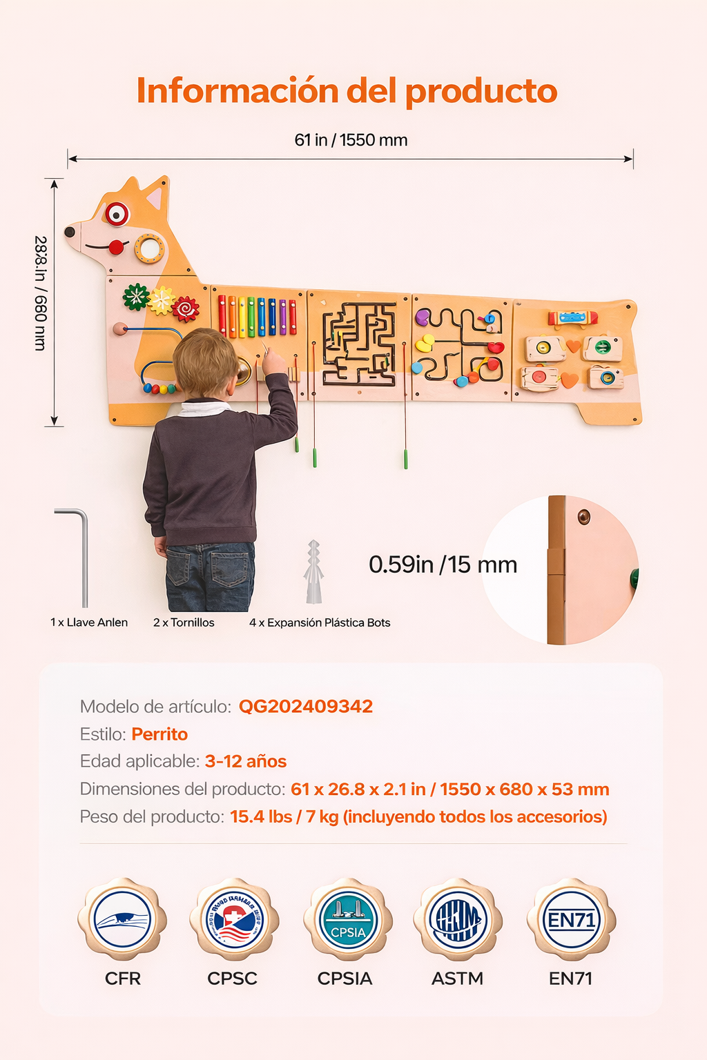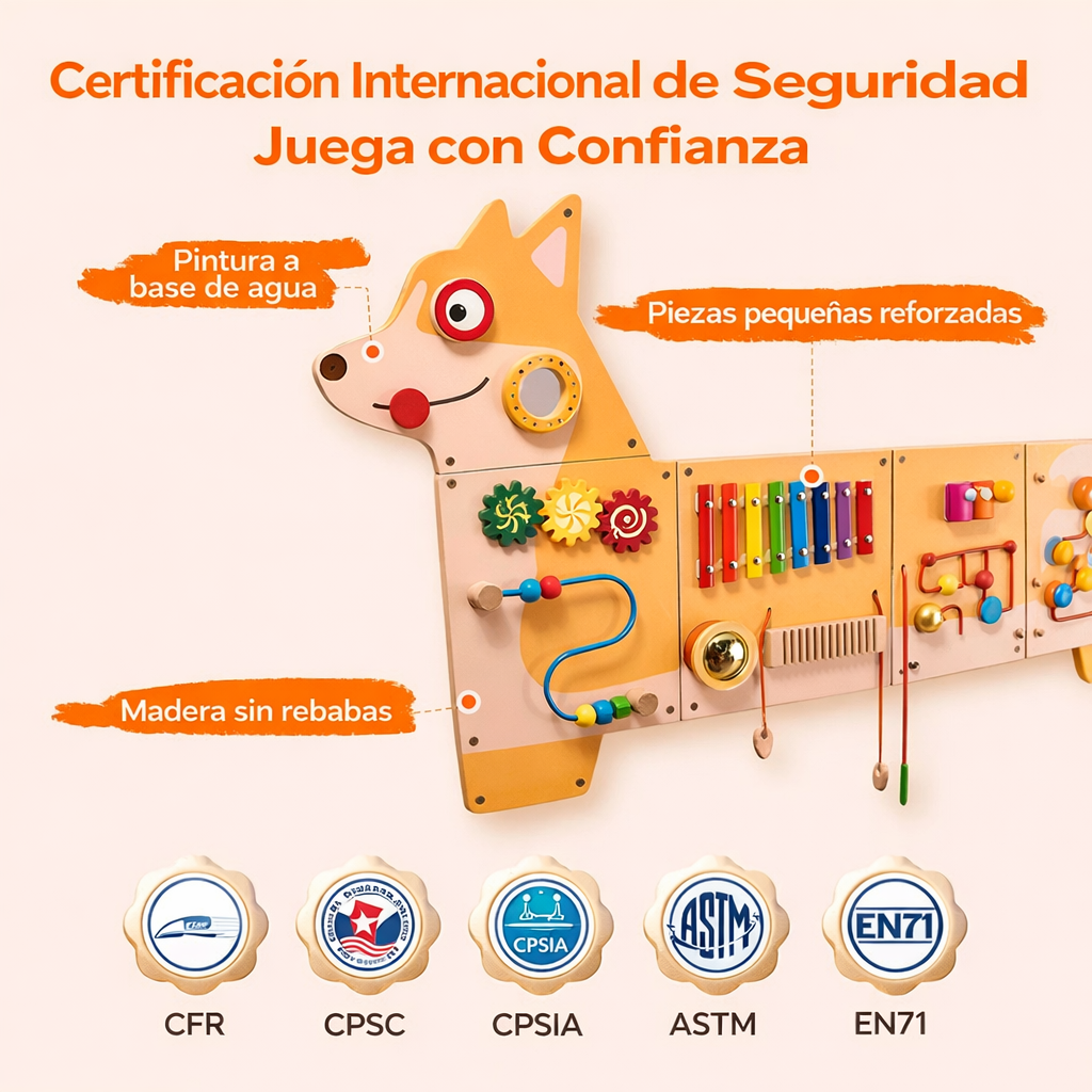 🐶 Panel de pared sensorial: Gran panel educativo con múltiples actividades para el juego activo.